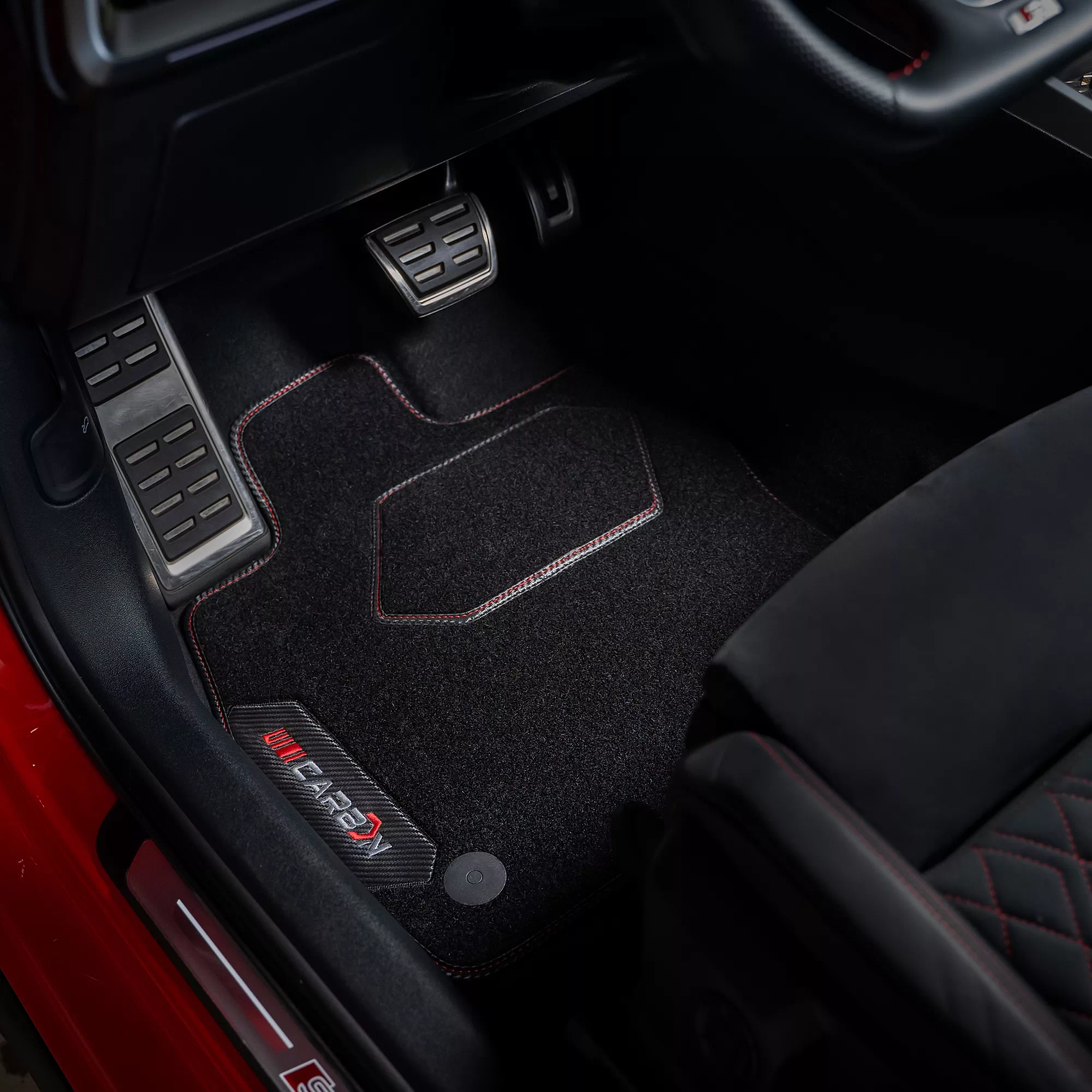 Wyjątkowy kunszt tych dywanów polega na niekonwencjonalnym zastosowaniu motywu włókna węglowego na lamówce i precyzyjnym hafcie wykonanym przy użyciu nowoczesnych maszyn CNC. Dzięki technologii wtłaczania cieplnego (MPT™) osiągnęliśmy bardzo wyraźny efekt wtopienia materiału, który doskonale odwzorowuje włókno węglowe. Co pozwoliło na zaimplementowanie wysokiej klasy technologii haftu komputerowego./carbon-zd-opis4.webp)