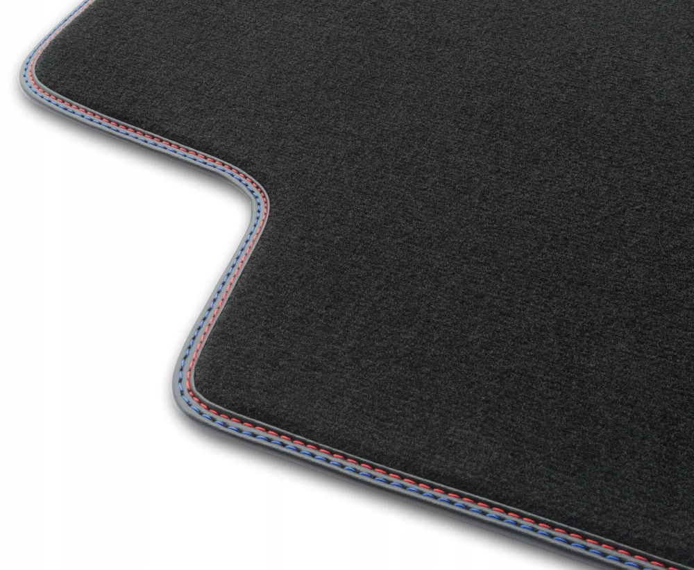 Obszycie: Czarna lamówka skórzana ( błyszcząca ) obszyta czerwoną i niebieską nitką